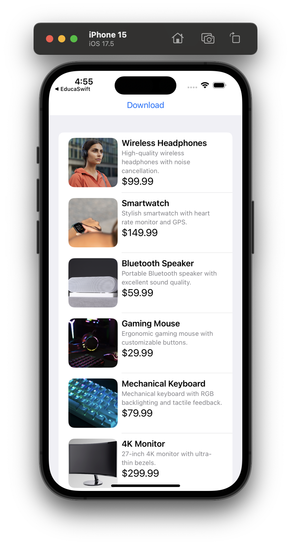 - Display a list of products from this url: https://educaswift.com/public/products.json